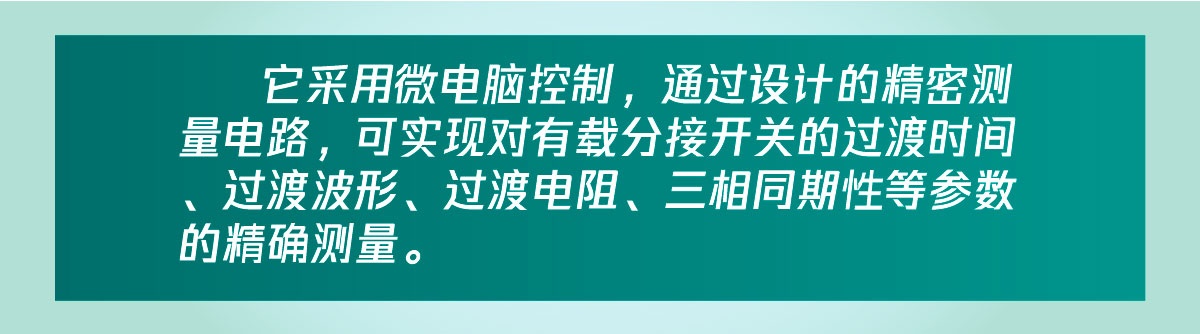 GDKC-2000B 變壓器有載開關(guān)測試儀,是用于測量和分析電力系統(tǒng)中電力變壓器及特種變壓器有載分接開關(guān)電氣性能指標(biāo)的綜合測量儀器。它采用微電腦控制,通過設(shè)計(jì)的精密測量電路,可實(shí)現(xiàn)對有載分接開關(guān)的過渡時(shí)間、過渡波形、過渡電阻、三相同期性等參數(shù)的精確測量。用戶可根據(jù)需要和現(xiàn)場條件,直接由分接開關(guān)引線進(jìn)行測量,也可由變壓器三相套管及中性點(diǎn)直接接線測量。