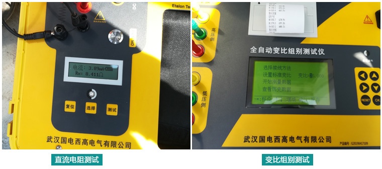 調(diào)試中用到的設(shè)備主要有:GDZRC-10Q直流電阻速測儀,GDYD-510M工頻耐壓試驗裝置,GD2672B絕緣電阻測試儀,GDB-II全自動變比組別測試儀。