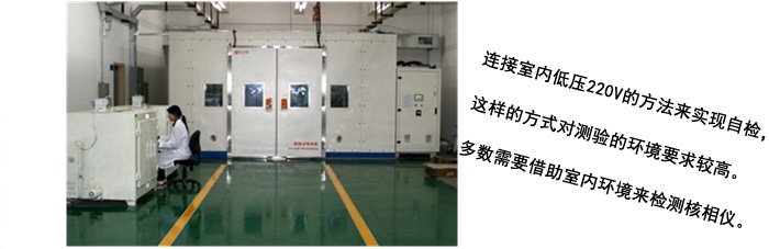目前國內(nèi)各核相器廠家針對核相器的檢驗主要通過連接室內(nèi)低壓220V的方法來實現(xiàn)自檢,并沒有專業(yè)的儀器來檢測這一設(shè)備,這樣的方式對測驗的環(huán)境要求較高。不能隨意根據(jù)檢測的要求隨意變化環(huán)境,多數(shù)需要借助室內(nèi)環(huán)境來檢測核相儀。