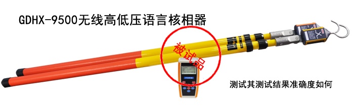 我們以GDHX-9500無線高低壓語言核相器為被試品,此款產(chǎn)品采用無線傳輸技術(shù),真正達到安全可靠、快速準確,不同電壓等級(10V-500KV)均適用。在核對電網(wǎng)的結(jié)構(gòu)時,對于三相連接的線路能夠準確的識別不同導(dǎo)線的相對相位,在2 個測量組件之間無任何電氣上的連接,這樣可使測量裝置的應(yīng)用非常靈活和安全。