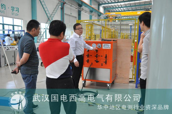 隨后客戶前往我司廠房對(duì)現(xiàn)有的SF6試驗(yàn)設(shè)備樣品進(jìn)行詳細(xì)的了解考察。由我司的技術(shù)人員詳細(xì)講解了SF6氣體回收裝置的試驗(yàn)原理、操作以及技術(shù)參數(shù)等。