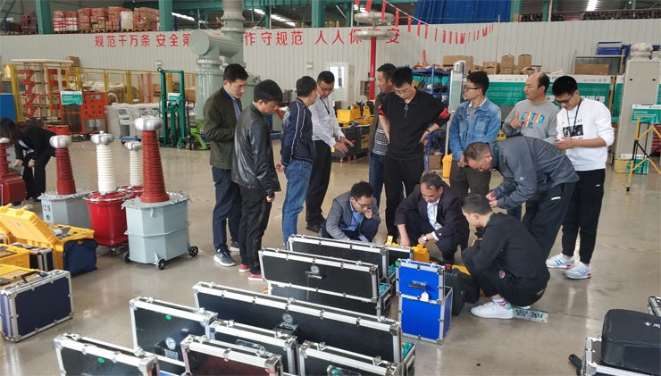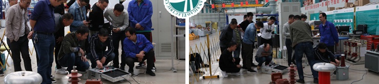 開課第二天,大家對(duì)17日講授的課程意猶未盡,紛紛提出讓老師再增加更多試驗(yàn)實(shí)操項(xiàng)目。我們根據(jù)大家的實(shí)際需求,針對(duì)學(xué)員們?cè)诠ぷ髦惺褂迷囼?yàn)設(shè)備儀器遇到的問題實(shí)行講解,分析問題所在并給予實(shí)際解決方案,大家聽后受益匪淺。課下時(shí)間大家聚在一起討論課程內(nèi)容、相互交流經(jīng)驗(yàn),一起參觀國電西高的電力試驗(yàn)設(shè)備。